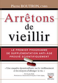 | Arrêtons de vieillir Pierre Boutron éditions Thierry Souccar « Pour vivre en meilleure santé et plus longtemps, j'ai fait le pari des antiâges. » Pierre Boutron Après avoir passé en revue les mécanismes du vieillissement qui commencent à être éludés et les théories du vieillissement, Pierre Boutron nous explique de quelle façon on commence maintenant non seulement à savoir pallier les conséquences du vieillissement mais aussi et surtout à freiner le vieillissement lui-même. Puisqu'il existe dans la nature des espèces vivantes qui échappent au vieillissement, rien n'interdit que nous puissions infléchir ce processus et dépasser notre limite de longévité. Grâce à une analyse extensive des études scientifiques, l'auteur démontre que le moyen le plus sûr d'allonger sa vie aujourd'hui consiste à compléter son alimentation par des suppléments d'antiâges. Avec une grande rigueur, il en sélectionne plus d'une dizaine qui ont montré une réelle efficacité et pour chacun, détermine la dose optimale. Et il existe beaucoup d'autres pistes qui devraient permettre de ralentir le vieillissement, comme par exemple les modifications génétiques, et d'allonger la vie encore plus. Mais gagner quelques années d'espérance de vie ne suffit pas à Pierre Boutron. C'est vers l'immortalité qu'il veut aller. Prolonger la vie en bonne santé le plus possible, voire indéfiniment, est souhaitable pour les individus. Il nous donne des pistes : manipuler nos gènes, percer le secret des cellules cancéreuses pour rendre nos propres cellules immortelles autant de défis scientifiques qu'il faudrait explorer au plus vite car selon lui, seule l'immortalité entraînera le bonheur de l'humanité. |
