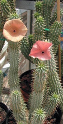 Depuis des siècles, les San, ou Bochimans, utilisent comme coupe-faim le Hoodia gordonii, une plante grasse qui ressemble à un cactus. Cette plante sauvage qui peut atteindre jusqu'à deux mètres de haut leur permet de surmonter la faim et la soif au cours de leurs longs périples de chasse dans le désert du Kalahari. Ils lui ont donné le nom de xhoba. Les San ont, en effet, l'habitude de partir pour de longues périodes de chasse à travers le désert du Kalahari, une région semi-aride qui s'étend de l'Afrique du Sud au Botswana, en passant par la Namibie. Chez les San, la tradition de chasse veut que l'intégralité du gibier tué soit rapportée au village. Ils ne doivent donc pas en consommer au cours de leur traque dans le désert. |