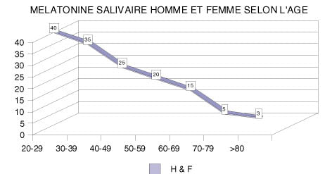 La mélatonine diminue avec l'âge. Après 50 ans, son taux est fréquemment diminué de moitié par rapport à l'adolescence. Son rôle dans le processus de vieillissement a été bien étudié. Par ailleurs, la supplémentation avec de la mélatonine comme aide au sommeil est devenu courante aux Etats-Unis, mais la dose efficace optimale n'a pas été définie.