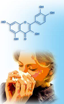 Dans une étude japonaise sur des mastocytes provenant du mucus nasal de sujets ayant une rhinite allergique péri-annuelle, la quercétine inhibait nettement la libération de l'histamine stimulée par des antigènes. À même concentration, l'effet de la quercétine était pratiquement deux fois plus important que celui du cromoglycate de sodium5.
